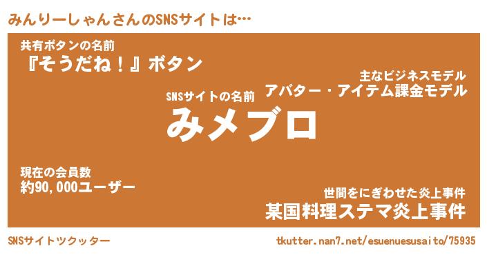 | ヘコむあだ名 | 『みんふぇ~』『なまこ酢』『みんお』 |
