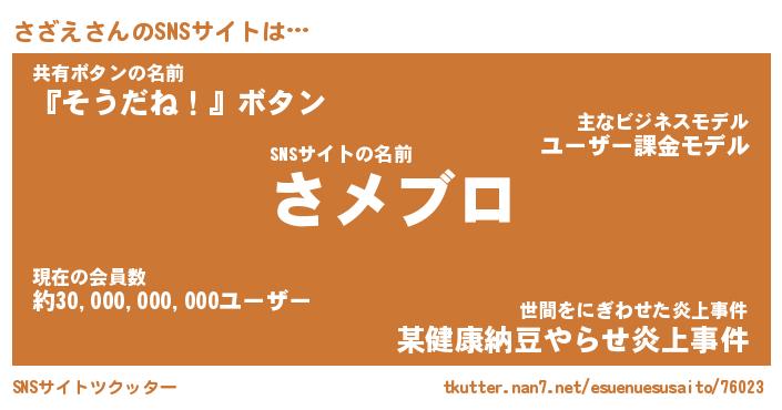 | 男性向けラノベタイトル風あだ名 | 『サザエアートオンライン』 |