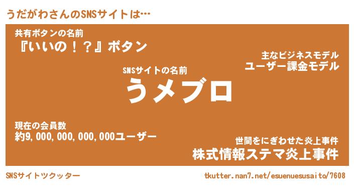 | 肩書あだ名 | 『うだがわ社長』『うだがわ総理大臣』 |
