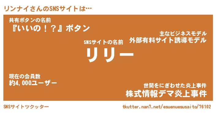 | 意味不明あだ名 | 『ペロリンリンナイ』『永久保存リンナイ』 |