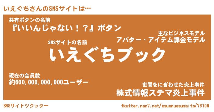 | 肩書あだ名 | 『いえぐち社長』『いえぐち大統領』 |