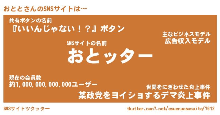 | 胡散臭い通販商品みたいなあだ名 | 『億万長者になれるブレスレット…その名も「おとと」』 |