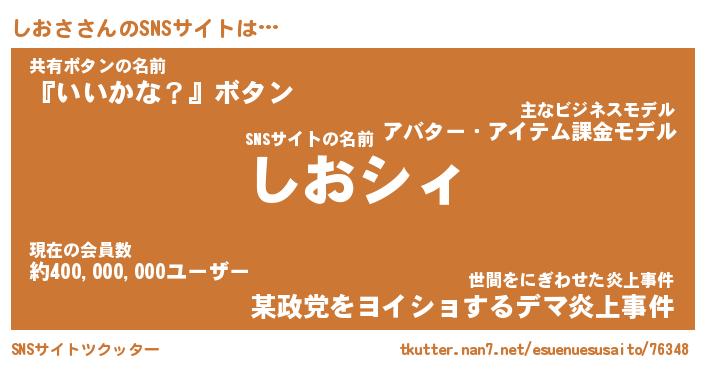| 意味不明あだ名 | 『ペロリンしおさ』『しおさフォーエバー』 |