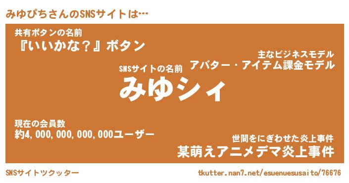 | ファンタジー風あだ名 | 『ミユフェル』『エターナルミユピチー』 |