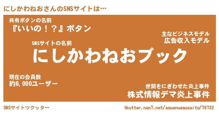 | 胡散臭い通販商品みたいなあだ名 | 『億万長者になれる水晶球…その名も「にしかわねお」』 |
