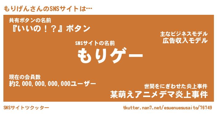 | 意味不明あだ名 | 『ペロリンもりげん』『永久保存もりげん』 |