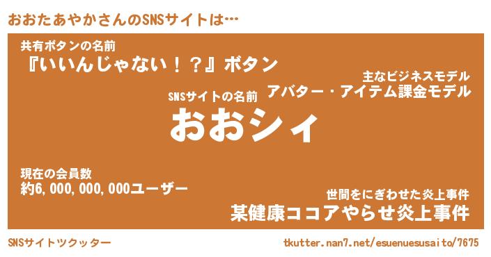 | 胡散臭い通販商品みたいなあだ名 | 『必ず成功する霊験あらたかなお札…その名も「おおたあやか」』 |