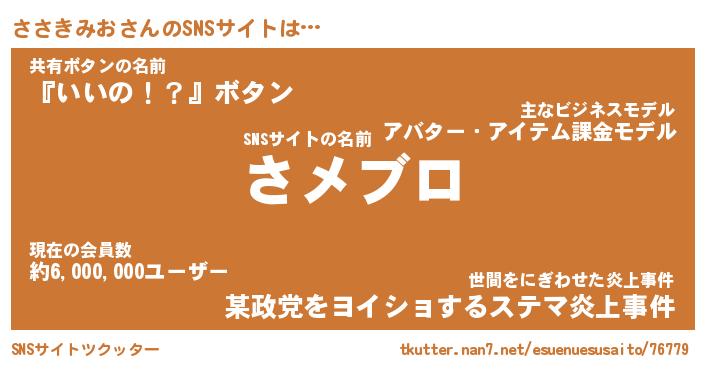 | 肩書あだ名 | 『ささきみお社長』『ささきみお国家主席』 |