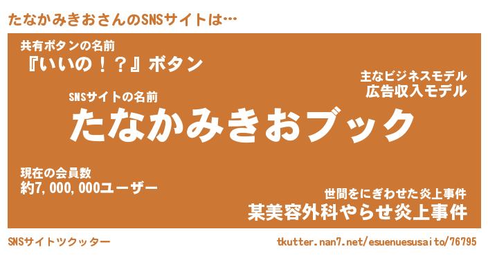 | 肩書あだ名 | 『たなかみきお社長』『たなかみきお塾長』 |