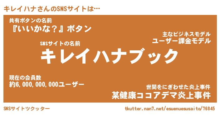 | 肩書あだ名 | 『キレイハナCEO』『キレイハナ大統領』 |