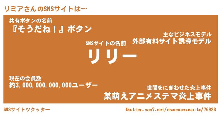 | 肩書あだ名 | 『リミア店長』『リミア大統領』 |