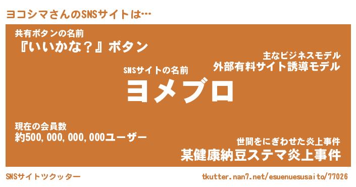 | ヘコむあだ名 | 『ヨコにゅー』『豆乳』『ヨコを』 |