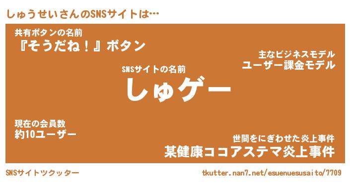 | ヒーロー風カッコイイあだ名 | 『スーパーシュウセイ』『幻影騎士シュ』 |
