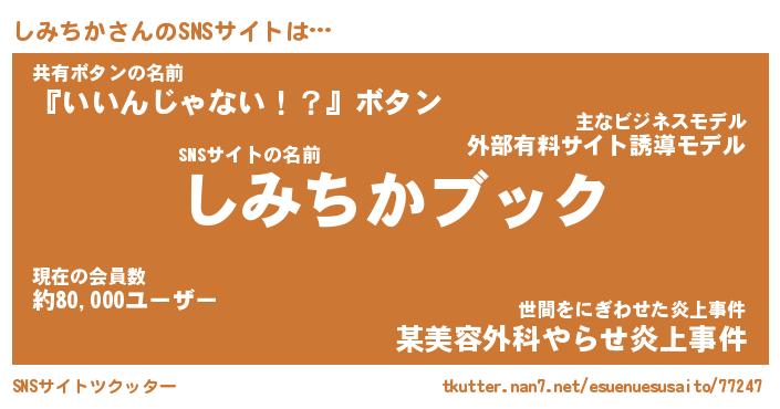 | ファンタジー風あだ名 | 『シミフェル』『エターナルシミチカー』 |