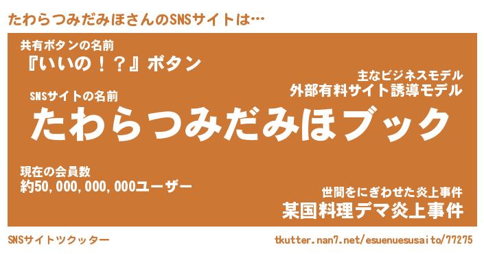 | 肩書あだ名 | 『たわらつみだみほ御曹司』 |
