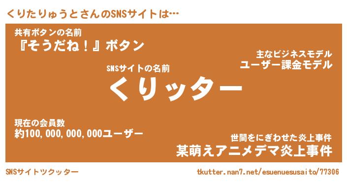 | 男性向けラノベタイトル風あだ名 | 『クリタリュウトアートオンライン』 |