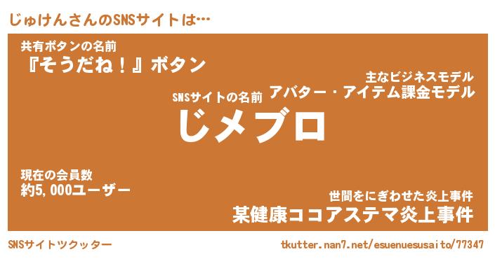 | ヘコむあだ名 | 『じゅもー』『酢こんぶ』『じゅお』 |