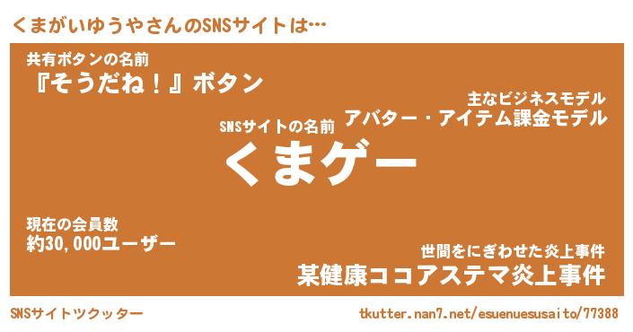 | 胡散臭い通販商品みたいなあだ名 | 『必ず成功する水晶球…その名も「くまがいゆうや」』 |