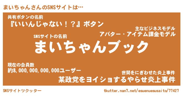 | 胡散臭い通販商品みたいなあだ名 | 『億万長者になれる霊験あらたかなお札…その名も「まいちゃん」』 |
