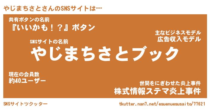 | 肩書あだ名 | 『やじまちさとCEO』『やじまちさと班長』 |