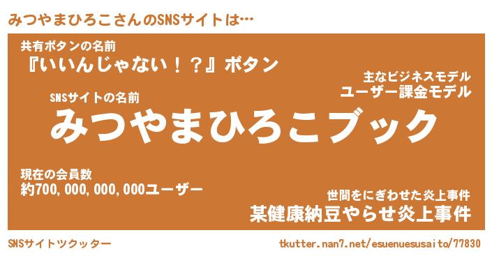 | 胡散臭い通販商品みたいなあだ名 | 『億万長者になれる水晶球…その名も「みつやまひろこ」』 |