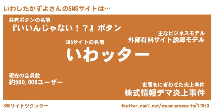 | 胡散臭い通販商品みたいなあだ名 | 『億万長者になれるブレスレット…その名も「いわしたかずよ」』 |