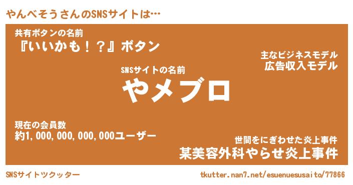 | 男性向けラノベタイトル風あだ名 | 『ヤンベソウアートオンライン』 |