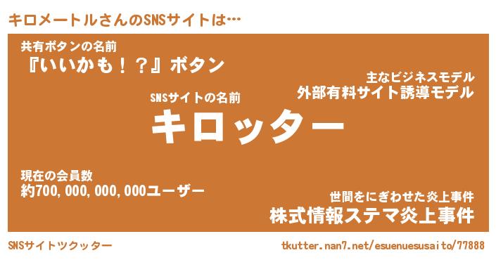 | 胡散臭い通販商品みたいなあだ名 | 『億万長者になれるブレスレット…その名も「キロメートル」』 |