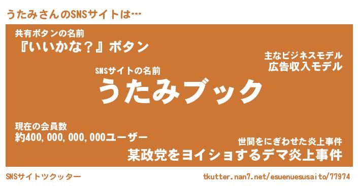 | 肩書あだ名 | 『うたみ社長令嬢』『うたみ大統領』 |