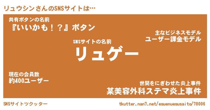 | 男性向けラノベタイトル風あだ名 | 『リュウシンの憂鬱』 |