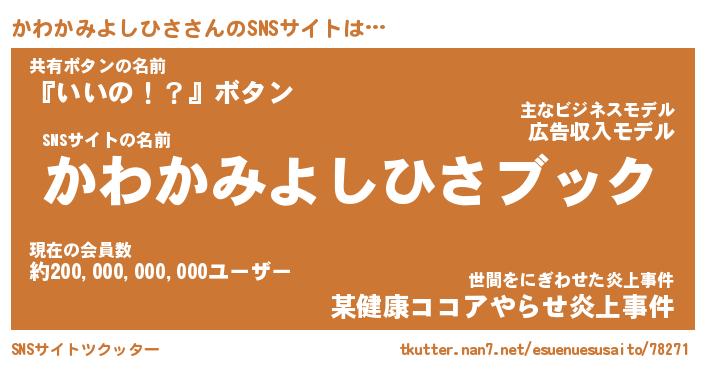 | 胡散臭い通販商品みたいなあだ名 | 『億万長者になれる霊験あらたかなお札…その名も「かわかみよしひさ」』 |