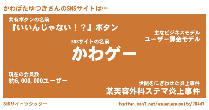 | ヘコむあだ名 | 『かわにー』『豆乳』『かわっちょ』 |