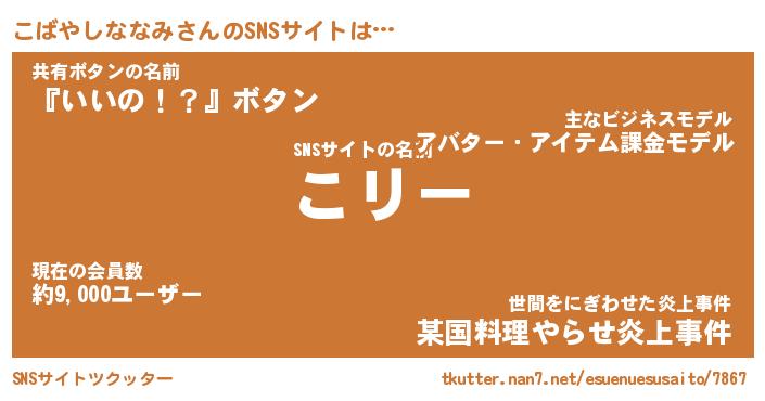 | 胡散臭い通販商品みたいなあだ名 | 『モテモテ間違いなし水晶球…その名も「こばやしななみ」』 |