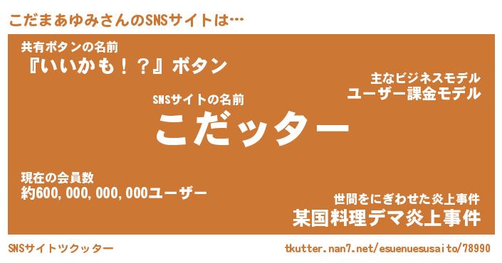 | 胡散臭い通販商品みたいなあだ名 | 『億万長者になれる霊験あらたかなお札…その名も「こだまあゆみ」』 |