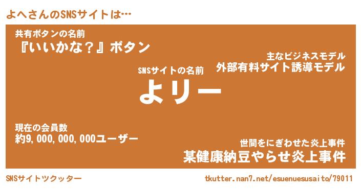 | ヘコむあだ名 | 『よへにー』『なまこ酢』『よへっぺ』 |