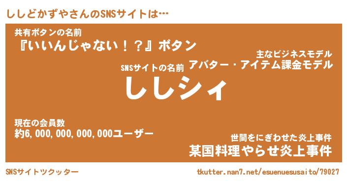 | 男性向けラノベタイトル風あだ名 | 『ししどかずやの憂鬱』 |