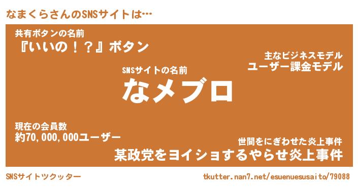 | ファンタジー風あだ名 | 『ナマフェル』『エターナルナマクラー』 |