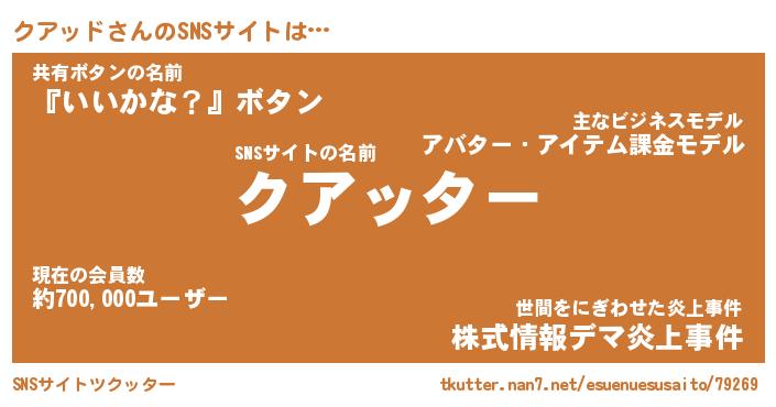| 男性向けラノベタイトル風あだ名 | 『クアッドアートオンライン』 |