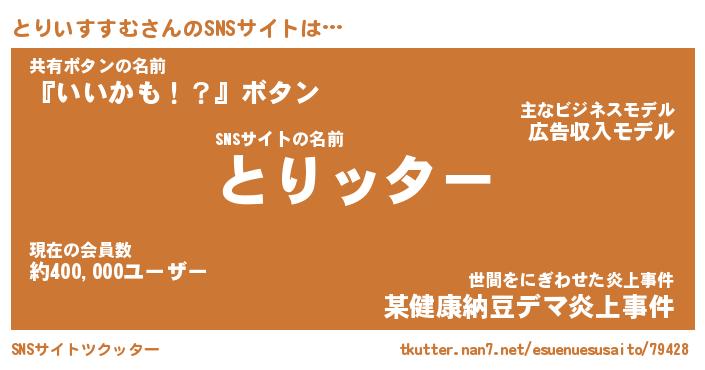 | 胡散臭い通販商品みたいなあだ名 | 『億万長者になれる霊験あらたかなお札…その名も「とりいすすむ」』 |