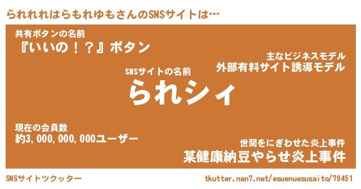 | ポケモン風あだ名 | 『ラレチュウ』『ラレレダネ』 |