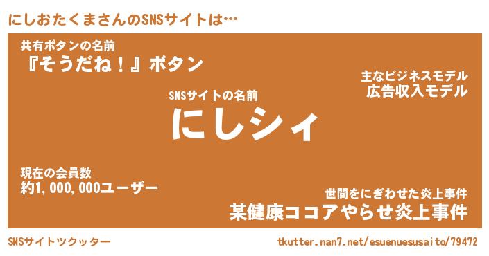 | ヘコむあだ名 | 『にしにゅー』『つくし』『にしお』 |