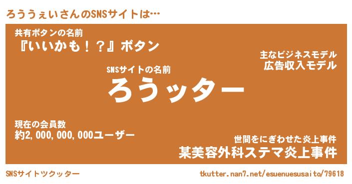 | 胡散臭い通販商品みたいなあだ名 | 『億万長者になれるブレスレット…その名も「ろううぇい」』 |