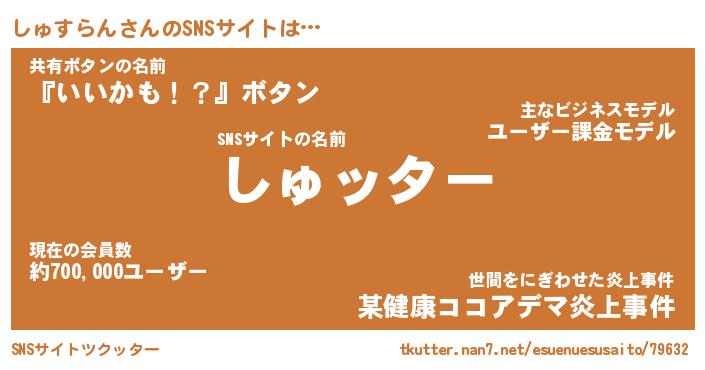 | 胡散臭い通販商品みたいなあだ名 | 『億万長者になれる水晶球…その名も「しゅすらん」』 |