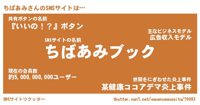 | 肩書あだ名 | 『ちばあみ店長』『ちばあみ国家主席』 |