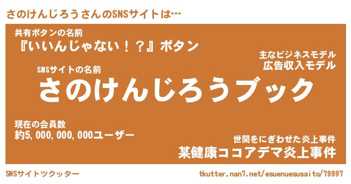 | 胡散臭い通販商品みたいなあだ名 | 『億万長者になれる霊験あらたかなお札…その名も「さのけんじろう」』 |