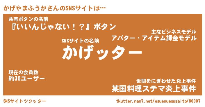 | 男性向けラノベタイトル風あだ名 | 『カゲヤマフウカアートオンライン』 |