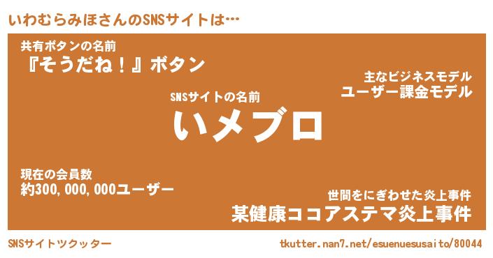 | ヒーロー風カッコイイあだ名 | 『スーパーイワムラミホ』『幻影騎士イワ』 |