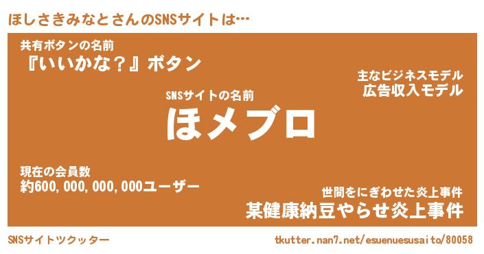 | ヘコむあだ名 | 『ほしっふぃ~』『豆乳』『ほしっぺ』 |