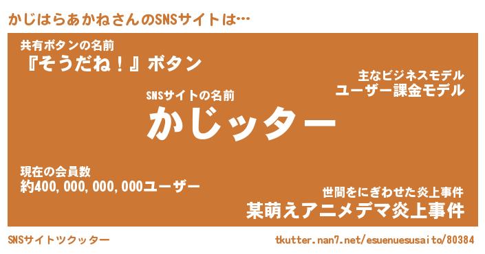 | 胡散臭い通販商品みたいなあだ名 | 『億万長者になれる水晶球…その名も「かじはらあかね」』 |