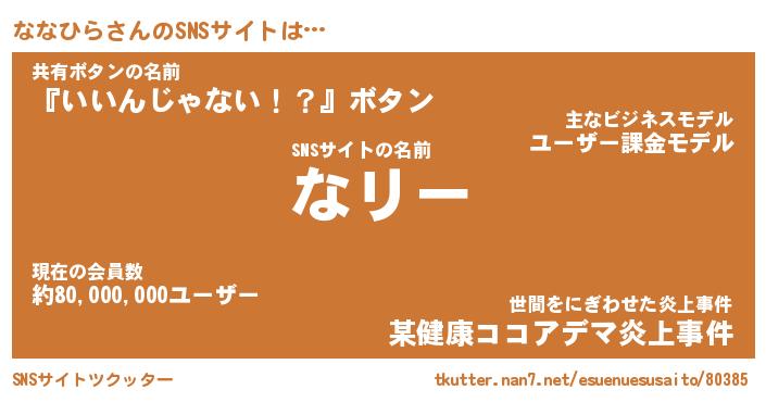 | 肩書あだ名 | 『ななひら社長』『ななひら国家主席』 |